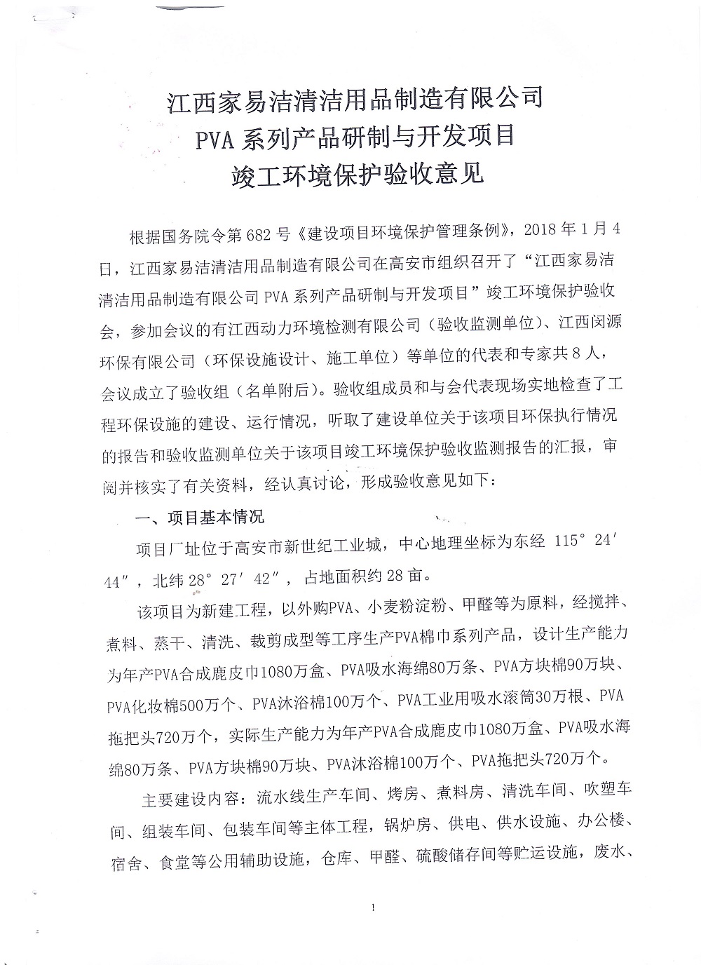 开元PVA系列产品研制与开发项目竣工环境保护自行验收验收意见